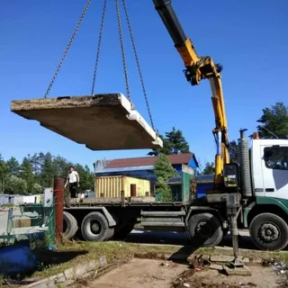 Выполняем разгрузку и укладку плит с использованием кранов-манипуляторов. Работаем точно по уровню и с учётом проектной геометрии.